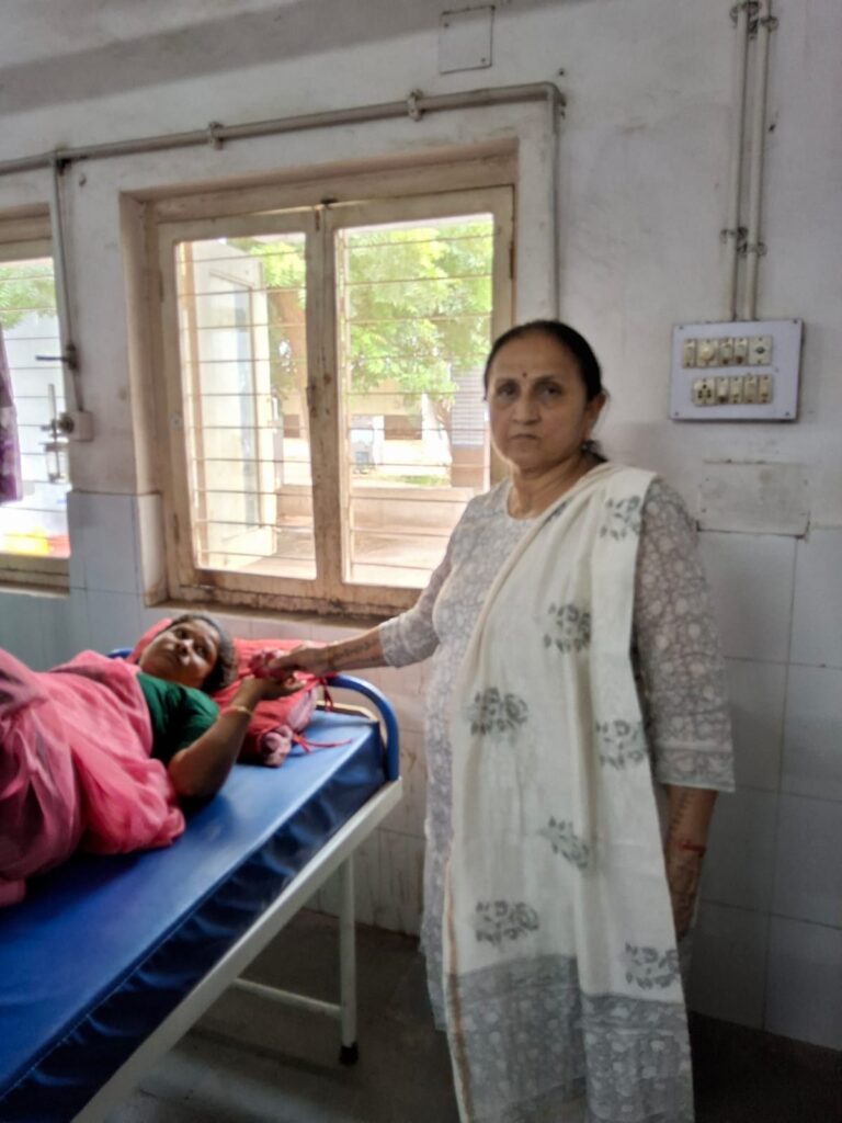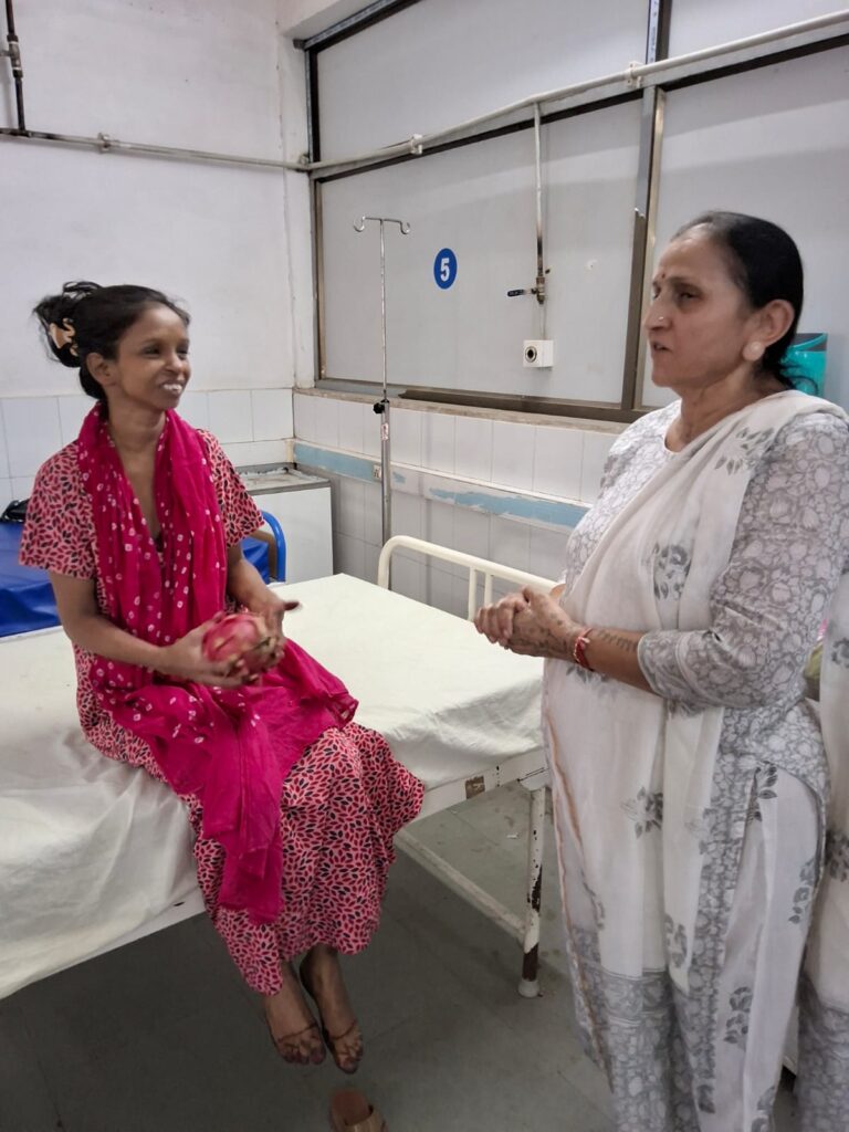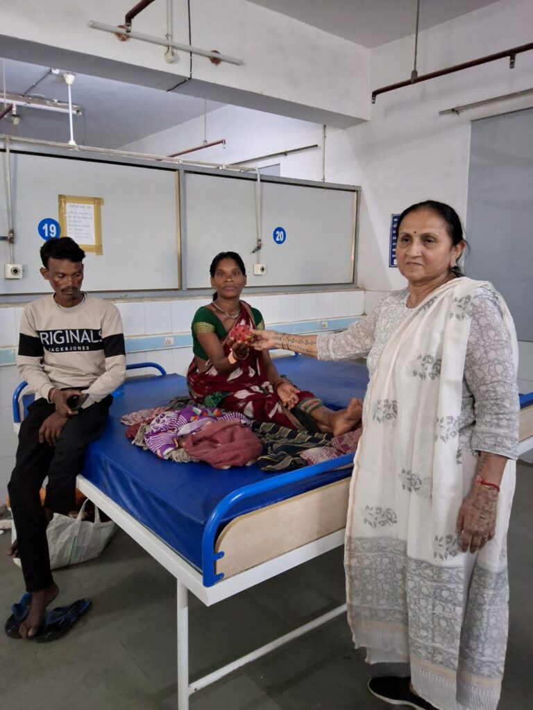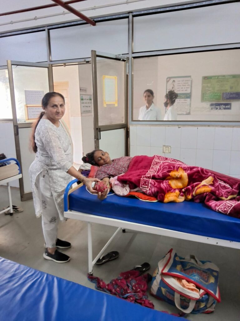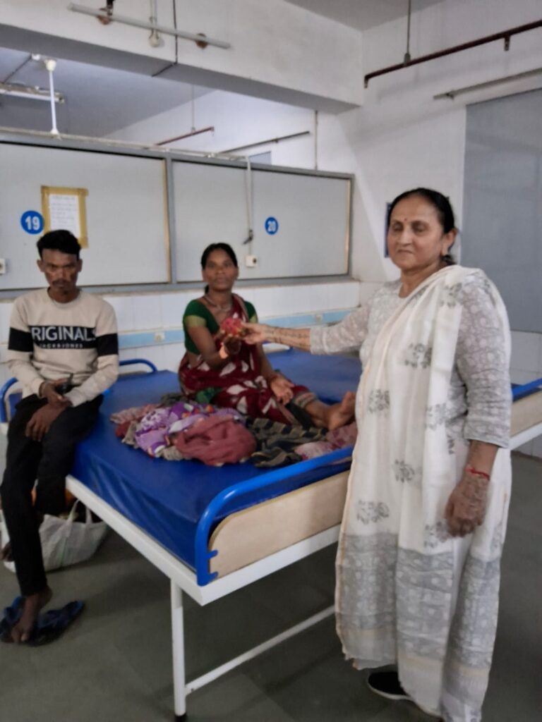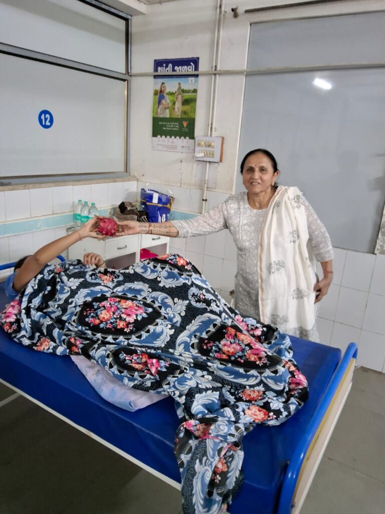 Fruit distribution to patients at Rambagh Hospital, Adipur on behalf of NEElagri Organic Hub on the occasion of Pujya Bhaishree’s birth anniversary
